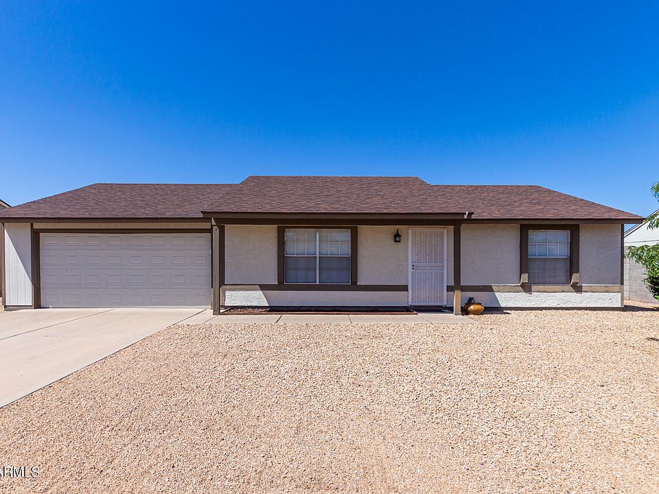 Charming single-story, with an excellent location near shopping centers, restaurants, and parks, is move-in ready! This 2-bedroom and 2-bathroom home offers an easy-care front yard, a 2-car garage, and an RV gate. Inside, You'll find a cozy living room with a large window, wood-look tile flooring, and a coat closet for convenience. The eat-in kitchen features ample wood cabinetry, stainless steel appliances, tile backsplash, granite counters, and direct access to the backyard. The main bedroom includes a private bathroom and sliding door closet. Check out the spacious backyard where you can host private gatherings. Don't let this opportunity slip by!