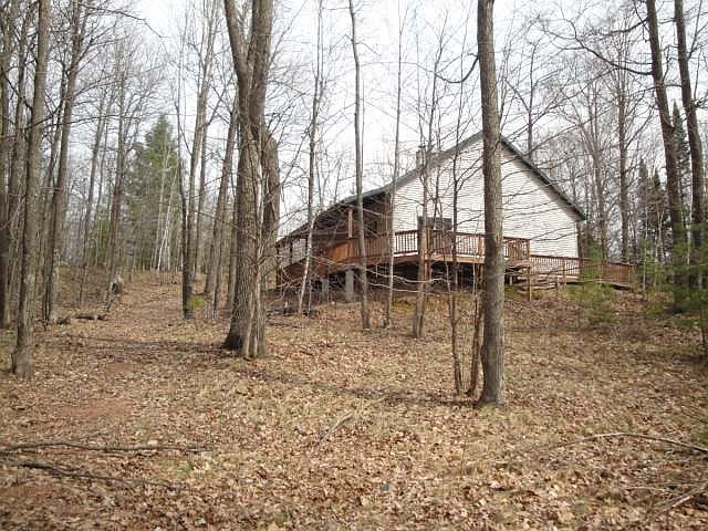 Cute as a bug's ear, this 2 bedroom, 2 bath year-round home or cottage is located on a no-thru road with 127 feet of southeast-facing fisherman, sand & gravel frontage on Samway Lake. Tall ceilings & knotty pine walls accent the main level. The living room has a patio door leading to a wraparound deck overlooking the woods & lake. The spacious kitchen & dining area is a great gathering place, offering plenty of cabinets, counter space, & room for a large table & chairs. The walk-in pantry & 1-car garage are located off of the kitchen. Completing the main level is a full bathroom, laundry/utility room & a landing area. Upstairs there are 2 nicely sized bedrooms, a sitting area, & another full bathroom. The home has seen extensive updating in the last 10 years, including siding, kitchen, bathrooms, some windows & doors, knotty pine walls, flooring, lighting & electric service. A crushed granite path leads to the quiet, 42-acre, clear water lake where the loons & wildlife play.