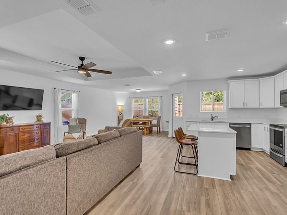 Patio spaceGrassy yard spaceDining areaQuartz countersLarge primary bedroomWalk-in closetLinen closet