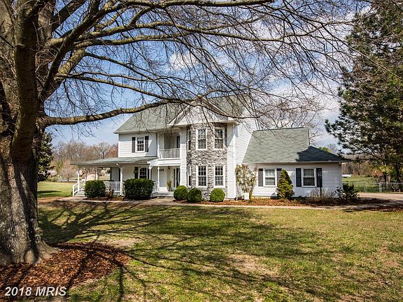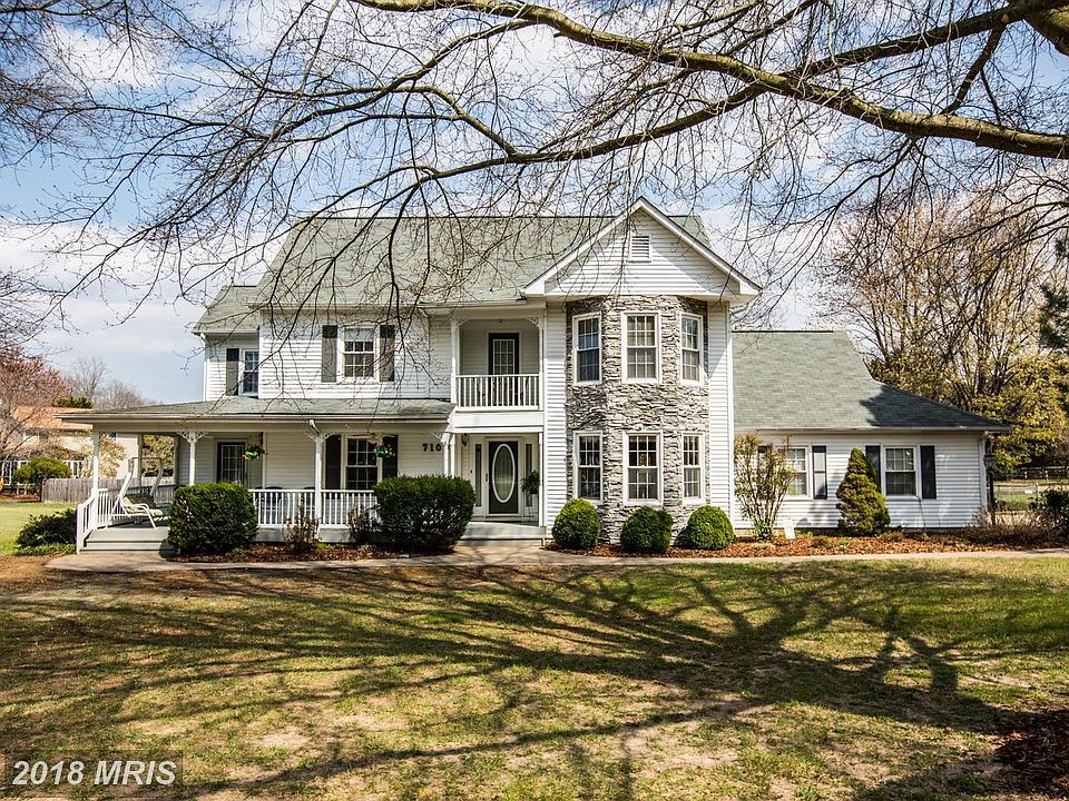 SOUTHERN STYLE COLONIAL w/Inviting, Wrap Around Front Porch & Stone Accents! "Park Like", level lot w/mature trees -2.06 acs. NO HOA. Metrocast Internet. Granite Countertops & SS Appliances, Large Rms throughout. Huge Master Suite w/Bay Window. Fam Rm w/Bay Window & Gas FP, 3 Skylights,14'x15' Screened-In Porch, Fire pit, Fenced-in backyard. 2 Car Garage. Choice Location near Base or MD Bridge.