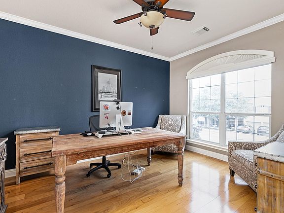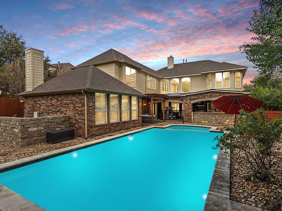 Shimmering pool and spaTexas landscapeRefined finishesGleaming wood floorsSelf-sufficient lower levelExpansive outdoor kitchenDedicated office