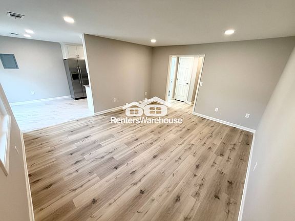 There is a half bath just off the family room. The second floor has two bedrooms and 1 full bath and there is a few stairs to the third floor which has the master bedroom and walk in closet. Come rent this before its gone!