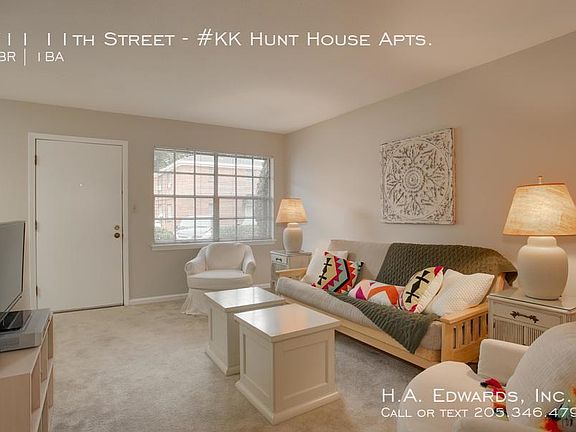 Property UDF: Description (Move In Availability: 09/01/18. Hunt House Apartments is located one block to campus at 711 11th Street, behiind Tutwiler. The unit features a large living room kitchen equipped with stove and fridge, spacious bedroom and bath.