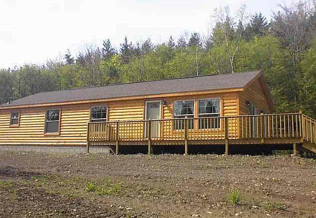 New modular log , wrap around deck w/ great veiws of the mountain. close to Windham and Hunter Mountains. Master bedroom w/ masterbath, extra large tub for soaking and seperate shower.Home has open living,dinning and kitchen w/ double french style sliding doors to take in the veiws. A must see. Excellent Condition, Condition-New