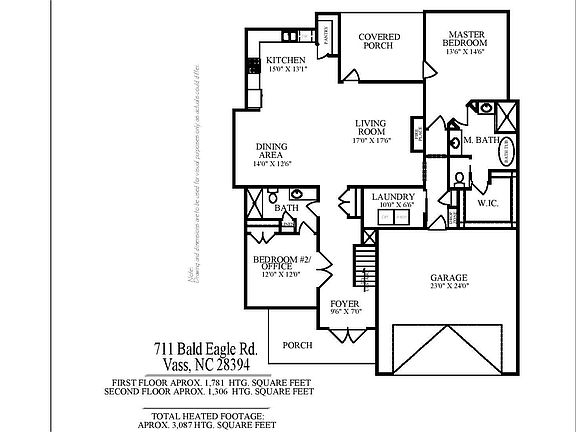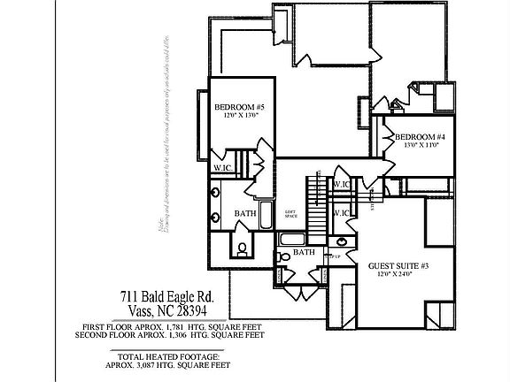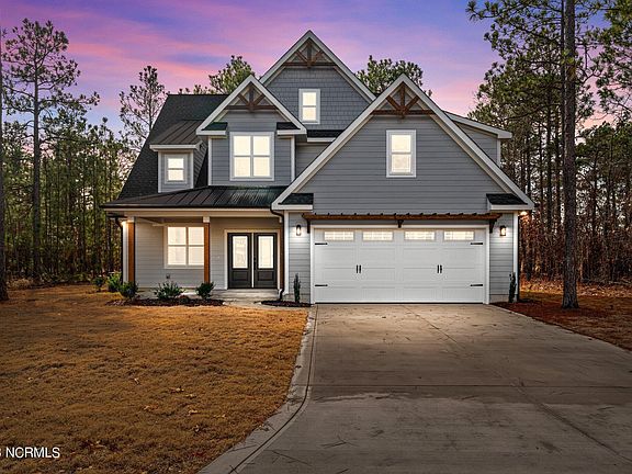 Ready now! This beautifully crafted 3,100 SF 5BR/4BA quality home was built by Wolfe Development & Construction and designed by Chris Gardner in the popular Woodlake gated community! Many great custom features and amenities: double French doors that open to an optional home office/ bedroom adjoining a full bath. There is an abundance of natural light throughout the home due to a large number of windows. This spacious open-concept plan includes a bright kitchen with tiled backsplash, an oversized quartz island, large walk-in pantry, plenty of storage with lots of cabinets and an adjoining dining area. The living room has a lovely gas log fireplace and overlooks the back covered patio that is perfect for entertaining and relaxing. The master bedroom is on the first floor and has a ensuite with a tiled walk-in shower, garden tub, double quartz vanity sink, oversized walk in closet and private lavatory. There is an ample laundry room and drop zone entering from the oversized garage. On the second floor you will find 2 more bedrooms with the 3rd bedroom having the option of serving as the bonus room due to its enormous size. Additionally, there are 2 full baths and loft area. This home is complete with several storage/coat closets. Bald Eagle Drive is a quiet street with a cul-de-sac at both ends. Nestled in the desirable gated community of Woodlake which is a short commute to Ft. Liberty, Sanford, Pinehurst, Southern Pines, support and medical facilities. Woodlake Country Club membership is optional and will provide various amenities for an additional fee. HOA/POA dues are approx. $1,730 per year, but there are no town taxes! Peace of mind is priceless living in a safe and secure community and attending Moore County schools!
