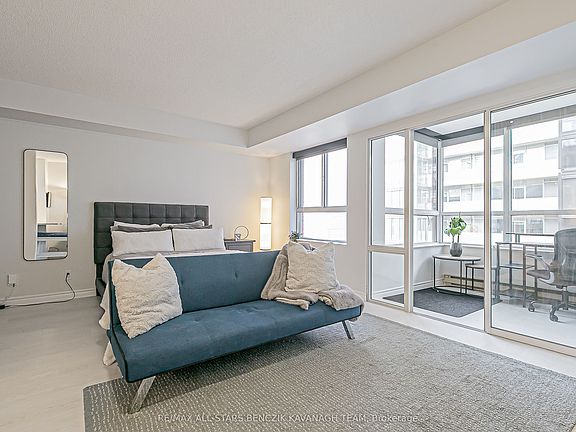 Welcome to The Liberties, located in the Bay Street Corridor, where this upgraded studio apartment with a versatile enclosed solarium offers over 500 sqft of modern downtown living. Featuring an updated kitchen with quartz counters, stainless steel appliances, under-cabinet lighting, and updated bathroom vanity, this home also includes newly installed vinyl flooring, blackout blinds, stylish light fixtures, and a LG wash tower. The solarium provides the perfect space for a home office or flexible use. Residents enjoy all-inclusive maintenance fees covering water, hydro, and heat, as well as access to exceptional amenities including an indoor pool and whirlpool, fitness centre with indoor jogging track, rooftop garden, and 24-hour concierge. With a walk score of 99, you're steps to College Park, Eaton Centre, Yonge-Dundas Square, TMU, UofT, major hospitals, the Financial District, Queen's Park, and TTC. An ideal choice for investors or university students, this property offers convenience, strong rental potential, and a prime downtown location.
