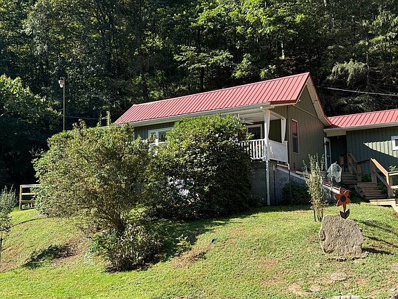 In rural Gilmer County, off a paved country drive called Bear Fork Road, you will find this charming home amidst 66 private acres. With a creek, woods, and a meadow in plain sight of the dwelling, you will feel immersed in nature as you watch the surrounding landscape from the comfort of the living quarters that the owners labored to make so quaint and cozy that you will just not want to leave. With the added benefits of deeded free gas, electricity in the barn and the outbuildings, and the Bear Fork stream meandering through the property, this property has the potential to make your dream of country living a reality. The rancher/bungalow home has had many improvements, including but not limited to: a new red metal roof, new vertical siding, new insulation, modern insulated windows, storm doors, and three new entry doors. There are also new treated wooden steps leading to the lumber deck, and the entryway. Upon entering, you will find the mudroom, paneled with rustic barn siding and floored in waterproof flagstone vinyl. An upstairs insulated attic offers storage, and the coat room walls reveal the home's unique early insulation of flour sacks and newspaper-complete with a vintage $15 suit ad. The bathroom features a modern low-flow toilet, one-piece tub/shower, and pump-style vanity faucet. The adjoining summer kitchen houses a new washer, dryer, dishwasher, refrigerator, gas cook stove, utility sink, and a newer hot water heater. Updated plumbing includes PEX lines and a three-stage water filter. Beyond this room, a large pantry with shelving and LED lights keeps your canned goods cool with its own air conditioner. The dining room offers colorful walls, chandelier lighting, and new LVP floors, while the kitchen features custom brick flooring, a butcher block island, cabinets with abundant storage, and a deck view perfect for bird-watching. A freestanding wood stove with stainless chimney and several individual room heaters provides cozy warmth in addition to the central heating furnace. The spacious living room has built-in bookcases crafted from timber harvested on the property, a checkerboard wood ceiling, and an antique Civil War-era mantle with a rare beveled mirror. The master bedroom is a soothing light-blue space with a ceiling fan, barn door, and wide-sill windows overlooking the deck. While currently utilized as a sewing room, another room connected to the living room would make a great bedroom as well. It is warmly painted in a cinnamon color, with ample light-ideal for sewing, crafts, or a nursery. Another bedroom is connected to the living room with Williamsburg-style finishes, a sliding barn door, and windows with views of the barn and gardens. Outside the kitchen, the deck is a three-season space with wildlife views. Adjacent to the deck you will also find a rebuilt cellar house that was once used for smoking meats, which is now complete with electricity and a gas heater. The renovated barn features a concrete block foundation and a new metal roof and the two Amish-built utility buildings have heat, electricity, and a loft. The property uses a state-approved aeration septic treatment system with transferable permits and annual inspections. The free gas supplies the central heat, hot water, cook stoves, dryer, heaters, and a 4kW automatic standby generator (with transferable maintenance contract). There is also central air conditioning as well. This property is approximately half an hour from Glenville and West Union, an hour from Clarksburg, and an hour and 15 minutes from Parkersburg. Please contact the listing agent to find out more about this rural mountain getaway.