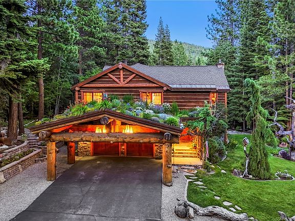 Expansive decks transition to stone patios and winding woodland paths. Each masonry stone is carefully placed to “tell a story,” evoking artistry in the landscape. Minutes from golf, ski slopes, and Lake Tahoe, this creative sanctuary blends bold design with alpine ease.