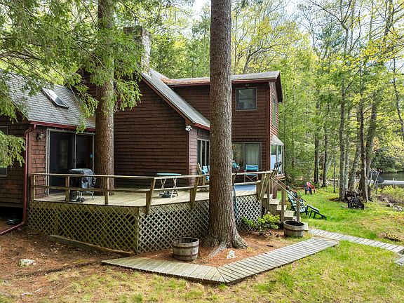 Built in 1950, this cozy year-round home nestled amongst the pines offering 95' of waterfront on Biscay Pond is ready to move in and start enjoying. During the day, enjoy swimming off the 48' dock and lounging on the sandy beach, or take the boat out for a spin around the lake. In the evening, relax on the deck while watching the sun set over the hills across the lake and listening to the call of the loons that nest on nearby Turtle Island. This two bed, two bath home comes fully furnished including dishes and cutlery and all the cooking and baking pots and pans you will need; also included are a grill, a canoe and two kayaks with paddles, and inflatable floating devices. The detached garage includes a portable generator and boasts a finished second floor bonus room with a small deck of its own overlooking the waterfront. If this is not enough, the property comes with a fully restored 1940 Chris Craft Runabout Deluxe with cover and trailer; this boat is truly a functioning work of art. Come take a look at this charming property; you are sure to fall in love with it.