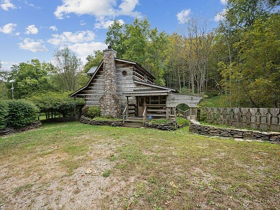 Experience country living on over 4 acres at its best in this beautiful 3-bedroom log cabin situated overlooking the creek. Private wooded acreage with peaceful creek view adds to the serene atmosphere. Home features stone fire place, beautiful wood work, multiple tiered decks, covered wrap around porch, several raised beds, detached garage and work shop building. Enjoy Walking the trails of the woods and along the creek seeing all the deer, turkey, and other wildlife, this property offers a true retreat into nature's beauty.