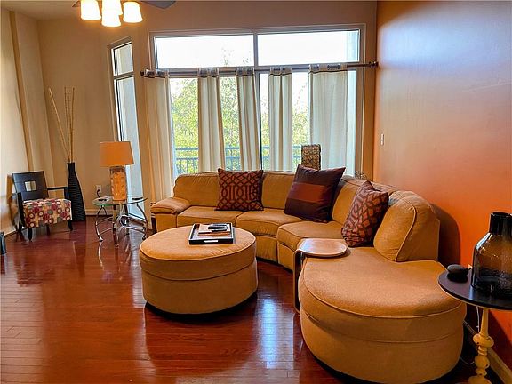 Spectacular Cosmopolitan! This spacious open concept 1 bedroom, 1.5 bathroom condo with a walkout balcony is conveniently located within walking distance of shops, dining, The living room/dining room/kitchen/powder room feature high ceilings and hardwood floors. The kitchen is equipped with granite counters and stainless steel appliances, and pantry. The primary bedroom has new LVP flooring. The private primary bathroom features a walk-in shower w/separate tub, double vanity and the large walk in closet with stackable washer & dryer. An assigned parking spot in gated garage. Close to Path400 trail, Marta, and I75/85. Unit is UNFURNISHED. Building Amenities include swimming pool, theater and billiards room, gym, 24 hour concierge, and controlled accessed building entry. Owner pays for water. Tenant is responsible for electric and internet/cable. NO pets of owner or visitor allowed. No smoking inside the unit. Minimum Lease term is 12 months.