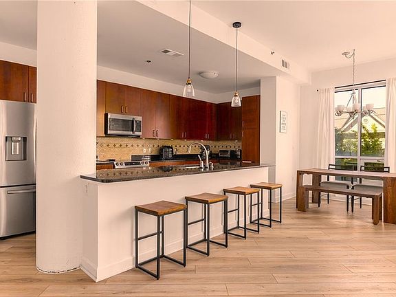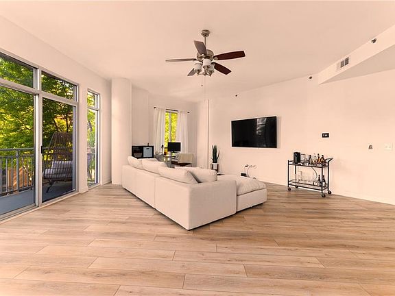 Quick Sale Opportunity — Seller Relocating. Unit 207 is a premier corner unit on the 2nd floor and one of the largest floor plans in the desirable Cosmopolitan at Lindbergh community. This expansive 1,489 sq ft residence features 2 good-sized bedrooms, 2 full bathrooms, and an elegant powder room for guests. Ready Move-in! Located on the second floor near the main entrance, the unit offers the convenience of easily spotting guests or delivery drivers as they arrive on the street below. Luxury waterproof vinyl flooring was renovated for both elegance and durability. The spacious open living area features soaring ceiling accentuated by two striking concrete pillars creating a grand and inviting ambiance. A massive sliding glass door opens to a private covered balcony, offering a tranquil view of lush greenery, blue skies, and serene outdoor moments. The spacious chef’s kitchen completes with abundant granite countertops, stainless steel appliances, stylish tile backsplash, ample cabinet storage, new wine fridge cooler and a well-integrated island with breakfast bar. This open-concept layout seamlessly connects the kitchen, dining, and living spaces, ideal for entertaining or everyday comfort. The carpeted primary suite, featuring abundant natural light, a spacious walk-in closet with built-in storage, and a luxurious ensuite bath with double vanities, a frameless glass walk-in shower, and a soaking tub set on tiled flooring. The secondary carpeted bedroom with its own en-suite bath, offers versatile functionality as a guest room, home office, or roommate friendly suite. Residents enjoy exclusive access to resort-style amenities including a sparkling pool, state-of-the-art fitness center (just steps from the unit), elegant piano lounge, billiards room, private theater, business center, and a sophisticated lobby with 24-hour concierge service. This unit also comes with two assigned parking spaces in the gated underground garage. Ideally located in the heart of Lindbergh/Buckhead, with Midtown just minutes away, and within close proximity to Lenox Mall, top-tier dining, upscale shopping, and vibrant nightlife. Communicating is effortless with nearby access to GA-400, I-75, and I-85, MARTA and nearby parks perfect for biking and walking and dog-friendly outings. Kitchen Wine fridge cooler (August 2025), Microwave and Oven (June 2020), Refrigerator (April 2022) and waterproof vinyl flooring (October 2021).