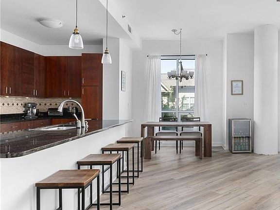 Unit 207 is a premier corner unit on the 2nd floor and one of the largest floor plans in the desirable Cosmopolitan at Lindbergh community. This expansive 1,489 sq ft residence features 2 good-sized bedrooms, 2 full bathrooms, and an elegant powder room for guests. Ready Move-in! Located on the second floor near the main entrance, the unit offers the convenience of easily spotting guests or delivery drivers as they arrive on the street below. Luxury waterproof vinyl flooring was renovated for both elegance and durability. The spacious open living area features soaring ceiling accentuated by two striking concrete pillars creating a grand and inviting ambiance. A massive sliding glass door opens to a private covered balcony, offering a tranquil view of lush greenery, blue skies, and serene outdoor moments. The spacious chef’s kitchen completes with abundant granite countertops, stainless steel appliances, stylish tile backsplash, ample cabinet storage, new wine fridge cooler and a well-integrated island with breakfast bar. This open-concept layout seamlessly connects the kitchen, dining, and living spaces, ideal for entertaining or everyday comfort. The carpeted primary suite, featuring abundant natural light, a spacious walk-in closet with built-in storage, and a luxurious ensuite bath with double vanities, a frameless glass walk-in shower, and a soaking tub set on tiled flooring. The secondary carpeted bedroom with its own en-suite bath, offers versatile functionality as a guest room, home office, or roommate friendly suite. Residents enjoy exclusive access to resort-style amenities including a sparkling pool, state-of-the-art fitness center (just steps from the unit), elegant piano lounge, billiards room, private theater, business center, and a sophisticated lobby with 24-hour concierge service. This unit also comes with two assigned parking spaces in the gated underground garage. Ideally located in the heart of Lindbergh/Buckhead, with Midtown just minutes away, and within close proximity to Lenox Mall, top-tier dining, upscale shopping, and vibrant nightlife. Communicating is effortless with nearby access to GA-400, I-75, and I-85, MARTA and nearby parks perfect for biking and walking and dog-friendly outings. Kitchen Wine fridge cooler (August 2025), Microwave and Oven (June 2020), Refrigerator (April 2022) and waterproof vinyl flooring (October 2021).