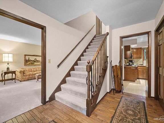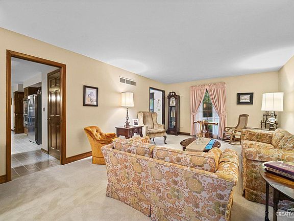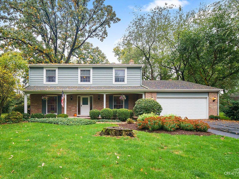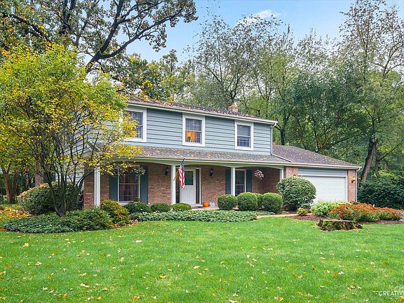 Picturesque setting! Custom traditional home sits back on a beautiful wooded lot! Great location with quick access to I-90 and all the shopping just blocks away! Partial brick front! Covered front porch perfect for summer nights! Large formal living room great for entertaining! Spacious eat-in kitchen with upgraded countertops, tile backsplash and oak cabinetry opens to cozy family room with solid brick fireplace, custom built-ins beamed ceilings and beautiful view of the backyard! Separate formal dining room with chair rail! Master bedroom with walk-in closet with private full bath! Gracious size secondary bedrooms! Large unfinished basement great for storage or a finished rec room! Lovingly cared for! Solidly built home awaits you!