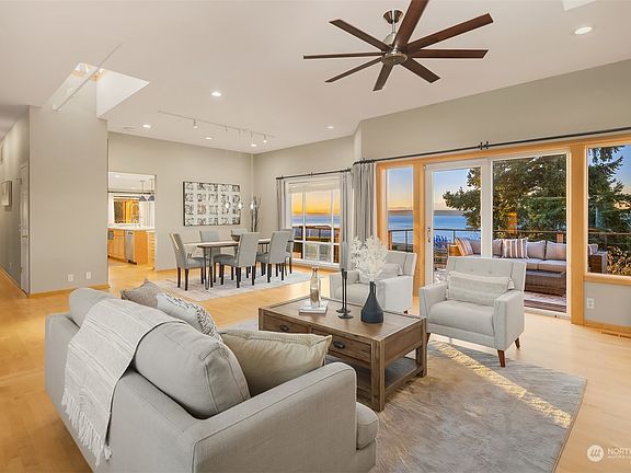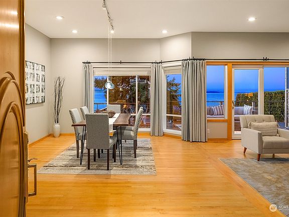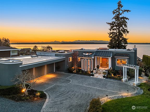 Views & luxury from this architecturally rich 5-bed Edmonds home w/ hints of mid-century influence. Walls of glass showcase Sound & Mt views framing West-facing sunsets. Thoughtfully designed formal & informal spaces w/ soaring ceilings, skylights & effortless indoor-outdoor flow. Gourmet kitchen w/ Wolf, Fisher and Paykel, & Bosch. Custom maple cabinetry, trim, built-ins & hardwood throughout. Relax to sunsets from the Primary Suite w/ deck & hot tub. Curbless walk-in shower. WIC. Lower level rec-room plus 2nd kitchen for MIL potential. Meticulously landscaped grounds highlight an expansive driveway, 3-car garage, pergola, greenhouse & multiple outdoor gathering areas to enjoy views. Sounder train makes an easy 24-mins Seattle commute.