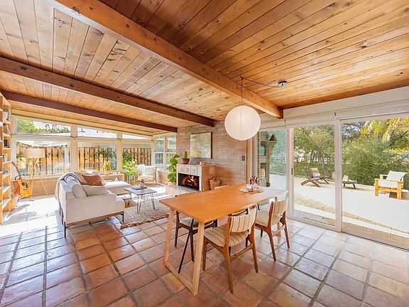 This adorable mid-century modern with mountain views in the heart of downtown has so much to offer. Recently updated, it has beautiful tile floors, wood beam/plank ceilings, large windows, and a unique fireplace. The kitchen is spacious and open to the living/dining area; the bathrooms are fresh and clean. There are independent mini-splits in important areas to fine tune a comfortable environment. There is a fenced front yard in front and a spacious back patio for outdoor dining. With raised beds, citrus trees, roses and a mature oak, the garden is a delight. A separate, enclosed carport has a washer and dryer and storage area. With three bedrooms and two baths, this bright, well-appointed, centrally located home is extremely livable while being a perfect canvas for decorative creativity.