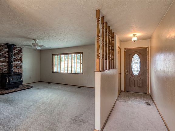Large in-town lot with a solidly built tri-level home. 5 bedroom, 2 baths. New roof, windows, A/C and furnace. Both bathrooms have been remodeled and updated. Hardwood floors in the upstairs 3 bedrooms. Blaze King woodstove. Garage with workshop area. Large, fully fenced backyard is a gardener's delight with three gate access and numerous fruit trees and berries. Grow your own apples, pears, plums, cherries, strawberries, raspberries and blueberries. Large decks front and back. Paved RV or boat parking.