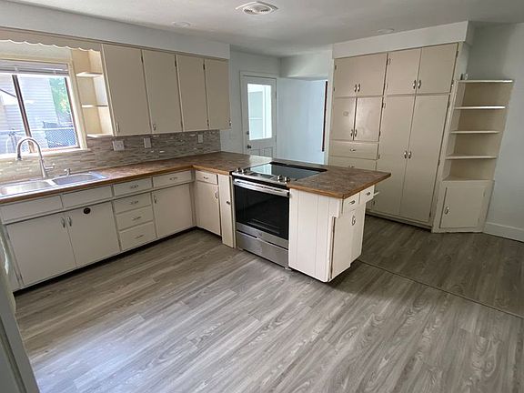 Large kitchenDeep double kitchen sinkBreakfast bar topTons of cabinet storageStainless steel appliancesLvp flooringOpen-concept layout