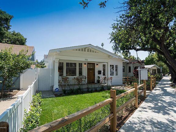 This magically restored 1912 Craftsman sits in the heart of South Pasadena in walking distance to downtown Mission St, Trader Joes, Metro station, library, park and much more. Reclaimed wooden fence borders the front yard garden welcoming you to the charming porch. Enter into the living room which boasts beautiful Peony wallpaper, picture and leaded windows, and built-in book cases. Open floor plan leads to the dining room and gourmet kitchen which includes custom cabinetry, GE Cafe appliances,built-in Keurig, quartz countertops, pot-filler, skylight, and wonderful built-in desk area. Dedicated laundry just off kitchen. Hallway leads to a guest bedroom, full guest bath and large linen closet. Master suite offers privacy, large walk-in closet, en suite bath, double vanity and spa-like shower. Hardwood floors throughout, home security system, and home audio system throughout including backyard. Backyard is reminiscent of the Northeast as a wooden walkway leads to a deck perfect for entertaining and bbq's. Lush and stunning gardens fill the yard as a garden bridge leads to the grass and vegetable flats. Stone walkway leads to a covered patio/carport ideal for outdoor dining. Finished garage can be used as a studio, office or rec room. Additional parking.