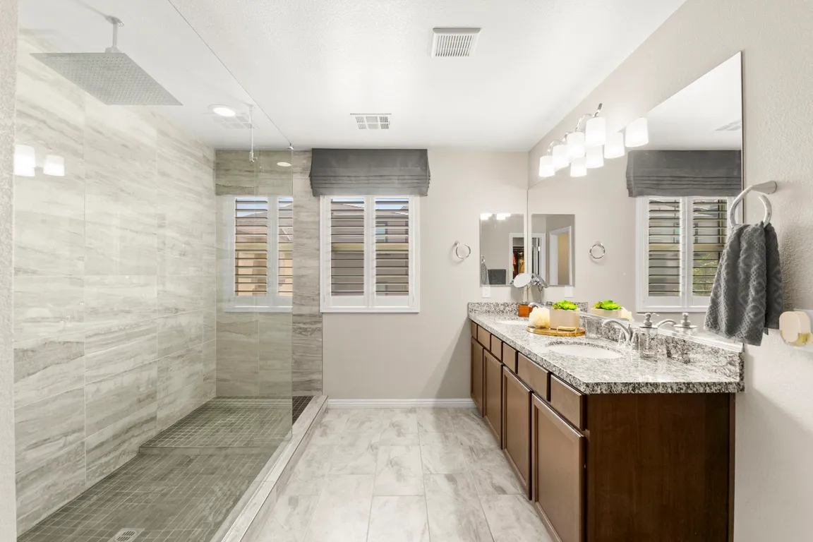 Corner unitStylish backsplashEpoxy flooring in garageOversized laundry roomBuilt-in speakersDual sinksPrimary suite