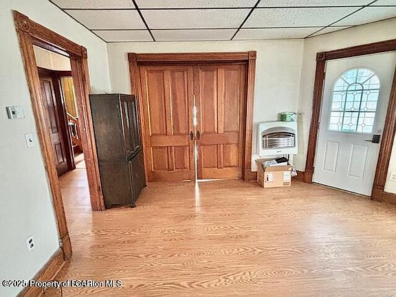 Opportunity knocking! Traditional style 2 story with a great functional layout and good room sizes. The stained glass,, open switchback staircase, entry foyer, pocket doors and natural woodwork make it an interesting home. Some updates are needed, hence the price, but what an impressive home once completed! There is a 2 car garage in the rear but only one bay door. As is sale.