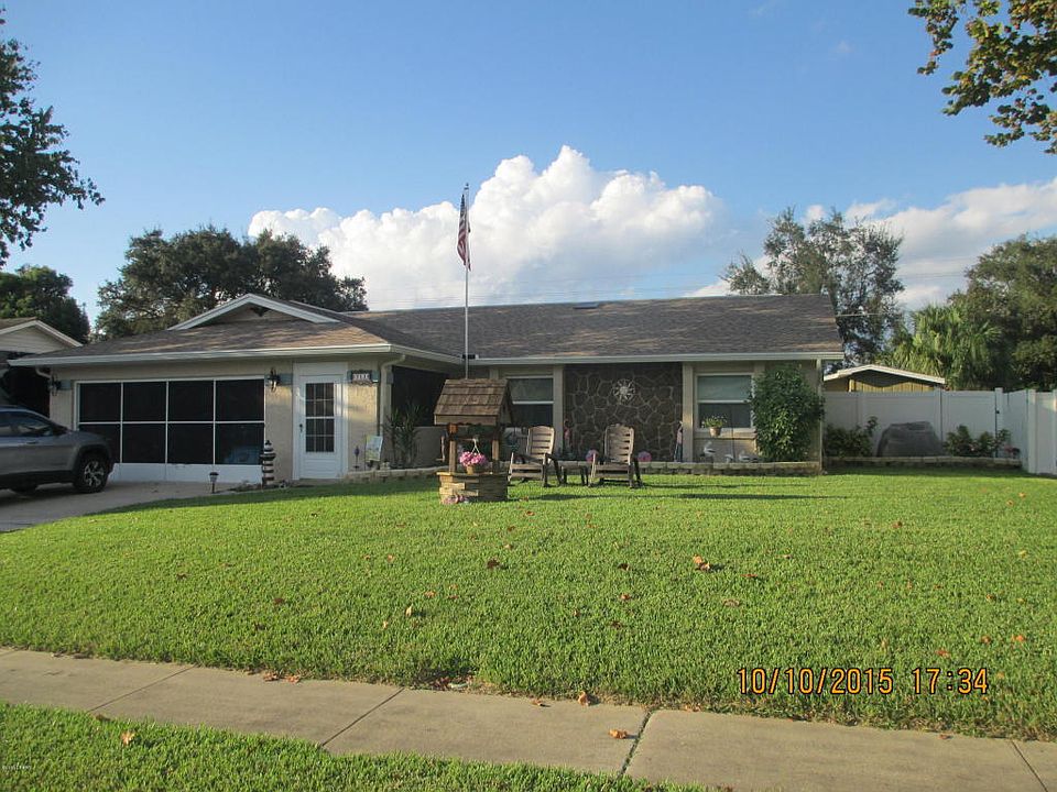 PARADISE FOUND! Pool home with 4 bedrooms in Port Orange. When you walk inside your front door and see the tropical paradise that is your back yard, you can relax, because you know you are home! This home has it all! The screened, solar-heated pool, 6 person hot tub, and jetted tub in guest bath help you to wash the world away. Everything has been redone in this solid home: paint, Pergo flooring and tile, knock-down ceilings, orange peel walls, crown molding, new kitchen with oak cabinets and Corian countertops, air conditioner AND ductwork (all rooms have their own vent AND return for consistent comfort), hot water heater, hurricane-rated windows, storm shutter for back slider, screen slider for garage, newer roof, brand new solar panels, pool resurfaced and new pool vacuum, new fence,