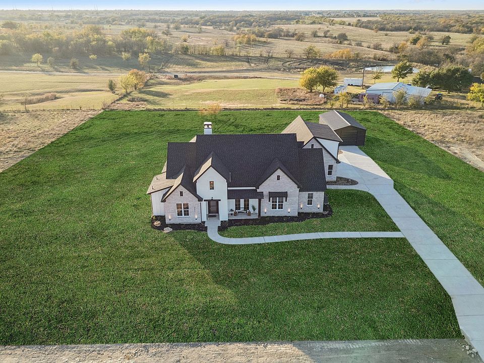 Elevated country living outside of city limits welcomes you to this exceptional 2-acre estate in one of Justin’s most sought-after luxury communities, where timeless Texas charm meets elevated modern design. Built by Homeroots Luxury Homes, this custom masterpiece blends architectural sophistication with warm, inviting interiors. Inside, you’ll find wide-plank wood flooring, soaring ceilings, and designer lighting throughout. The spacious layout includes 4 bedrooms, three full baths, a half bath, and spacious living spaces with additional room upstairs ideal for a dedicated office space, media, 5th bedroom, or game room option. Heart of the home is the gourmet kitchen, truly a chef’s dream, showcasing quartz Bianca Carrara countertops, sharp Pebble shaker cabinetry, honed herringbone marble mosaic backsplash, Bosch stainless steel appliances, deep single basin sink, pendant lighting, & oversized island ideal for hosting. The living area features a striking fireplace showcasing honed marble tile and expansive views leading to the oversized covered patio—perfect for relaxing or entertaining in style. Primary suite is an oasis with deep soaking tub, stunning gold fixtures, and bianca carrara quartz. Step outside and enjoy the expansive acreage, complete with a detached shop, and generous space with animal-friendly zoning, hobbies, or future enhancements. The extended 3-car garage adds storage and functionality. Additional highlights include a low 1.3% tax rate, animal-friendly property, and no HOA restrictions—offering the freedom to truly make this your own country oasis. Ideally located just minutes from Tanger Outlets, elevated shopping & dining, & just 35 minutes from DFW Airport this estate is more than just a home—it’s a lifestyle of serenity, sophistication, and space to live freely while having access to incredible amenities.