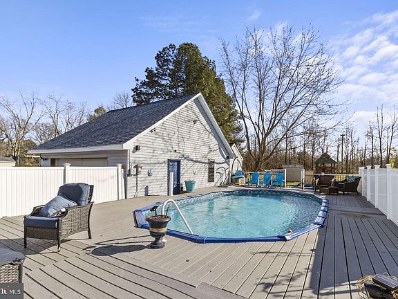Welcome to your own Deale Beach hideaway! Nestled just blocks from Parker Creek and the Chesapeake Bay, this 3 bedroom, 2 bathroom bungalow is perfect for people who love the feel of a beach town, but the convenience of nearby cities. When you first walk in, you'll be struck by how big the space feels, thanks to the copious natural light and open floor plan. The cool blue tones, light gray floors, and painted brick add to the laid-back feel of Chesapeake Bay living. Make your way to the back of the house to take in the large kitchen (complete with an abundance of counter space and a sizable island), as well as a sunny four season room leading to the expansive backyard. Upstairs, be sure to claim the primary bedroom as your own so you don't miss out on the spacious ensuite bathroom! Two more rooms round out the second level, ensuring plenty of space for you and your guests. Finally, head outside to check out the star of the show: the 0.8 acre lot which features a fenced-in deck with its very own pool, as well as a detached garage/workshop, shed, and playground. Pool was relined in 2011 and has an upgraded filter system. The garage is insulated and has been converted into additional finished space. It offers a large room perfect for a man-cave, she-shed, storage, or so much more (new owner can convert back to parking). Architectural shingle roof replaced in 2018, heat pump and water heater replaced in 2017. Leased solar panels keep electric bills low! Located just east of Upper Marlboro and Lothian and just south of Annapolis and Edgewater, this neighborhood lets you enjoy the perks of Bay living without having to sacrifice convenience and commuter routes. Don't wait to check out this gem - it won't stay available for long!