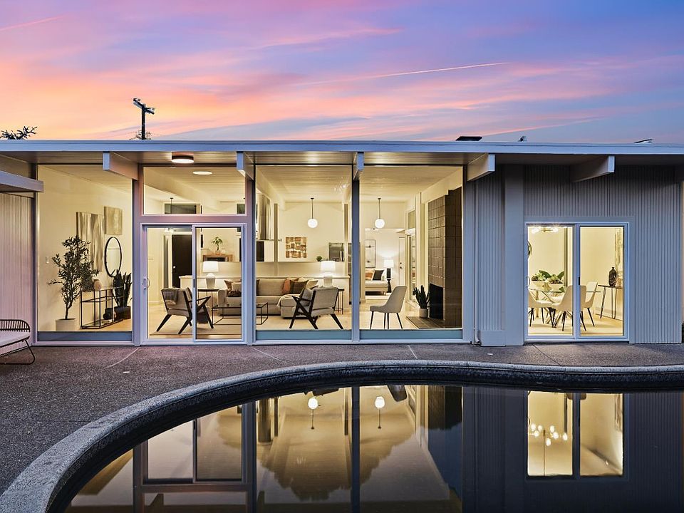 Discover this stunning mid-century Eichler home, perfectly blending timeless design with modern comfort. Featuring 4 spacious bedrooms and 2 bathrooms, this inviting residence offers a lifestyle of convenience and relaxation. The sun-drenched living room with floor-to-ceiling windows and a cozy wood-burning fireplace creates a warm and welcoming atmosphere. An open kitchen with stainless steel appliances makes meal preparation a pleasure. Ideal for contemporary living; the home boasts two versatile living spaces perfect for a home office, media room, or play area. The primary suite offers a private retreat with direct access to the sparkling pool patio, while three additional generously sized bedrooms provide flexibility for family and guests. Step outside to the fully gated backyard oasis, complete with an expansive patio for entertaining and a pristine in-ground pool perfect for summer gatherings. Recent upgrades include dual pane windows, roof, and electric. Located just moments from all Terra Linda has to offer, including schools, parks, restaurants, and shopping, this home combines location, comfort, and style. With approximately 2,221 square feet of living space on an 8,640 square foot lot, this property is a rare find in a highly desirable community.