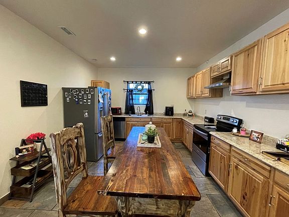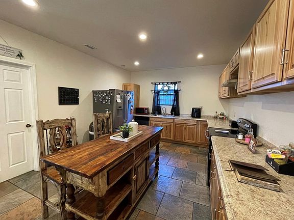 Two-story home featuring 3 bedrooms and 2 bathrooms. The kitchen offers generous counter space and storage, opening to a comfortable living area. A large laundry room and flexible bonus room provide added convenience and functionality. Outside, the property includes a detached two-car garage, metal fencing, and space to enjoy.