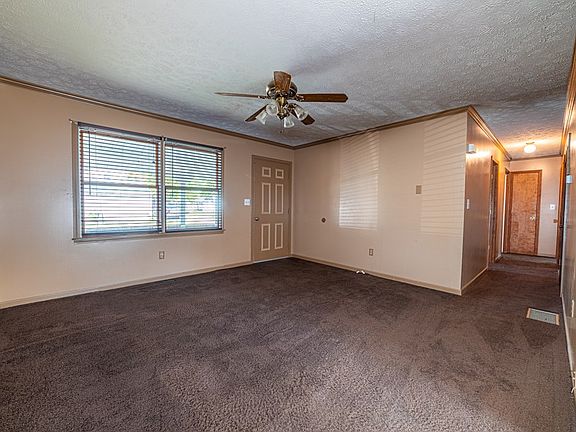 Whether you are just starting out, looking to downsize or would simply like a change, this is the place for you! Neutral colors throughout this home, make it very easy to add your own special touch! The kitchen & dining room have beautiful floors & cabinets, offering tons of storage space. The bedrooms all have paddle fans to keep you cool & comfortable. Having the laundry in the primary bedroom, on the main floor, is sure to save tons of time & trips up and down the stairs. This property is made up of 2 parcels totaling just over acre. You can relax & enjoy the scenery from the lovely covered front porch or go around back & take in the view from your deck. The yard is partially fenced & would be effortless to finish if you so desire. This charming home boasts new siding & the kitchen comes with a brand-new refrigerator. There is a 40x60 pole barn which includes a 20x40 woodshop. And for our campers or travelers there is plenty of room to park your RV!