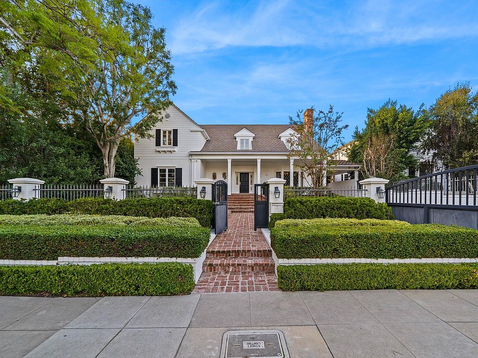 Here's your opportunity to live on one of the most sought out blocks in Beverly Hills Flats. This beautiful gated two-story traditional home with guest house includes seven bedrooms, six full and three half baths. The main home features a large front facing primary and three ensuite bedrooms on the second level and two additional guest bedrooms on ground level with a Jack and Jill suite. This spectacular estate is great for family gatherings and entertainment! You will enjoy the large gourmet kitchen with a breakfast nook, a living room with multiple TVs, a designer bar along with formal dining room that opens up to the outdoor space. The private backyard includes an outdoor kitchen, dining and lounge area that overlooks the pool, spa & guest house. The expansive & unique detached guest house has two-story which include an ensuite bedroom on the second level and a living room with a kitchenette on entry level floor. Please inquire for rates under one year and furnished pricing 1 year lease unfinished please text for short term and furnished options