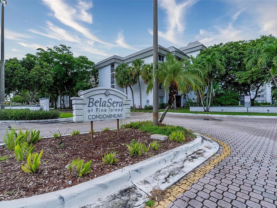 Charming 1 bed, 1.5 bath condo in the desirable Belasera at Pine Island community. This top-floor unit offers privacy, natural light, comfortable living space. Features include tile flooring throughout, spacious dining/living area, and a screened balcony with relaxing canal views. Enjoy the convenience of assigned parking, guest spaces. Community amenities include a pool, clubhouse, gym, and laundry facilities. Well-maintained complex with security cameras. Excellent location near shopping, dining, highways, and schools. No short sale, no REO. Perfect for homeowners or investors only wait 1 year homeownership. Schedule your showing today!