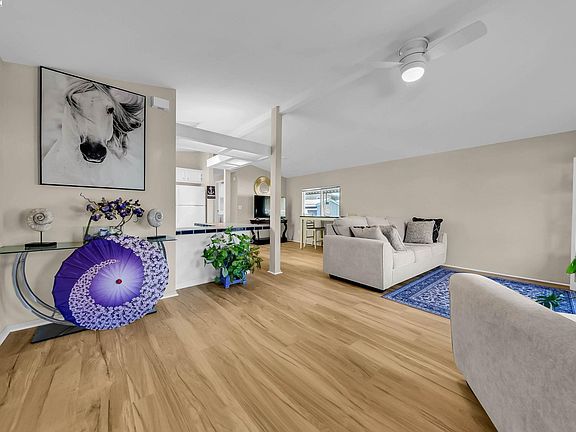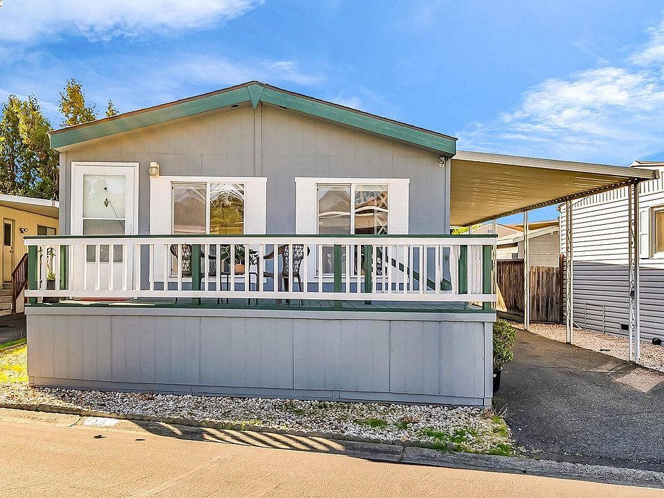 Spacious 1,120 Sq. Ft. sunny home features a light-filled floor plan with a large, open living room and dining room with breakfast bar in kitchen. The interior boasts brand-new, luxury vinyl plank-flooring in living room, dining room and hallway. Brand new carpet in both bedrooms. Freshly painted exterior. Front deck with beautiful, panoramic view of the rolling hills of Niles Canyon. Dual pane windows, high ceilings and kitchen skylight. Oversized carport will easily accommodate 3 cars. Large storage shed and low-maintenance yard. Located in the highly desirable Niles Canyon Mobile Home Estates…a lovely senior 55+ park that offers a year-round heated community pool, clubhouse, sauna & spa, plus many community activities. Fabulously located just minutes to downtown Niles!