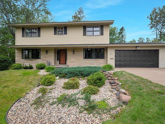 Welcome to 711 Old Howard Mill Road, nestled in Duluth’s Congdon Park neighborhood. This two-story home offers unique features with a sauna for ultimate relaxation and tandem garage allowing three cars to be housed. This space can also function as a workshop. Main level includes a living room with open access to a formal dining room that enters to the kitchen. A mud room right off of the kitchen and garage offers a dedicated space for unloading and storage. An office space and half bath conclude the main level. The second level offers a spacious primary bedroom with walk in closest and dedicated bathroom. Three other bedrooms and a full bathroom complete the second level. An updated basement offers an expansive recreation room with fireplace and wet bar to entertain with half bath and sauna with shower. A large utility room with laundry area featuring a laundry chute concludes the basement. The exterior of the home has stainless steel siding and natural stone original to the home.