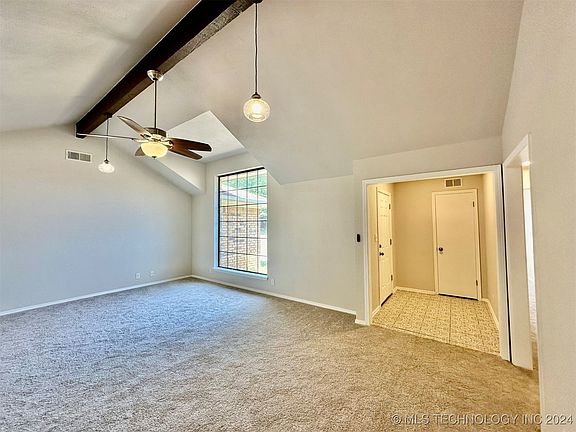 ·Inviting Living Space: The living room is designed for relaxation, with a vaulted ceiling, a cozy fireplace, and plenty of natural light.