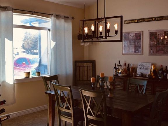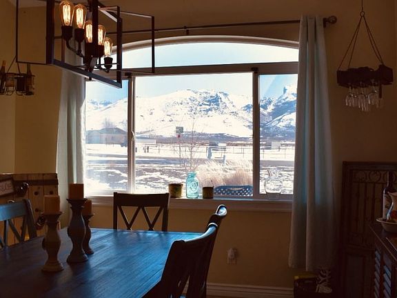 AMAZING VIEWS. There are so many things to swoon over in this home. Spanning 1884 square feet this "like new" Beck Home has so many features that will make this home appeal to your buyers. Inside you have a formal dining with updated light fixtures and big family room that connects to the kitchen. The kitchen and dining niche also have updated lighting fixtures and the island has reclaimed wood adding warmth into the home. In the split floor plan you have a master tucked away off of the dining niche with a walk in closet with built in shelving and an en suite master bath. On the other side of the home you have two bedrooms with built in shelving in the closets and another bathroom. An inviting covered porch brings you to the backyard where new fencing was done and rock landscaping. Home has new carpet and don't forget that the hot tub, kitchen appliances and washer and dryer all stay with the home! The pellet stove also stays with the home. You don't want to miss out on this one!