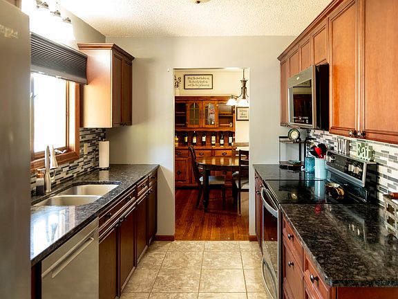 Huge corner lot almost a half acre! on this updated walk-out ranch home. Nice big 2.5 detached garage 24x24. PLUS a cute she shed! Inside you will find great views overlooking the oak tree's in the open land across the street. Hard wood floors, granite counter tops plus many other updated features. The walk-out basement really adds alot of value with the finished space and the cozy fireplace. This is a rare one!