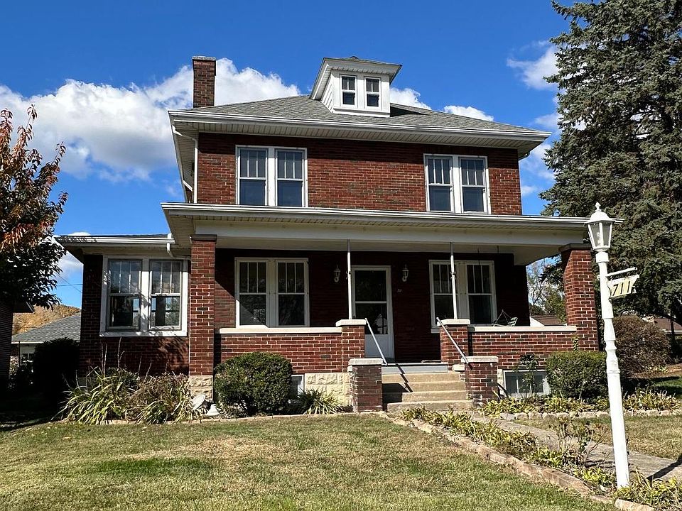 This classic traditional two story home is waiting for its new owners! Old world charm with the large front porch. This home features warm hardwood floors throughout. The spacious living room is home to a wood burning fireplace to enjoy during the cooler months. The side sunroom with hardwood floors, wood ceiling, and brick is sure to be a favorite spot! The formal dining room with french doors offers plenty of natural lighting and space to entertain. The kitchen which is located in the back of the home leads out to a small sunroom to relax in. Three bedrooms on the second level with a small back room that could serve as an office. Take notice that the full bath in newly renovated. The home features a walk up attic that serves as extra storage space! Two off street parking spaces in the back of the property. Newer roof on the home. Want to tour the home?.....give us a call today! Photo coming soon!