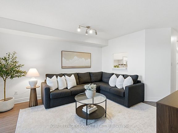 Live in the desirable Pingle Creek neighbourhood of Whitby! This updated, move in ready condo offers the perfect blend of comfort, convenience, and low maintenance living. Just 5 minutes to Highway 407 and surrounded by fantastic amenities, parks, and top rated schools, this location truly has it all. Inside, you'll find a functional floorplan with fresh neutral colours throughout, stylish new light fixtures, and sleek laminate flooring. The kitchen offers ample countertop space, new pot lights, ensuite laundry and overlooks the spacious main living area. A separate dining room is the perfect spot to host dinners but also provides flexibility - customize it to suit your lifestyle. Use it for meals, at home gym or office or convert it to another living space. Just off the living room, you can enjoy the lovely den with glass doors, showcasing an impressive easterly view and offering the perfect spot for a home office or reading nook. The generous primary bedroom features a large window that fills the space with natural light. You'll also enjoy the convenience of ensuite laundry and an updated washroom, plus one owned parking spot. Building amenities include an indoor pool, hot tub, billiards room, party room, and fully equipped fitness centre. This unit is an exceptional affordable opportunity - ideal for first time buyers, downsizers, or anyone seeking a modern, easy care home in a fantastic community. Move in and enjoy the best of Whitby living!