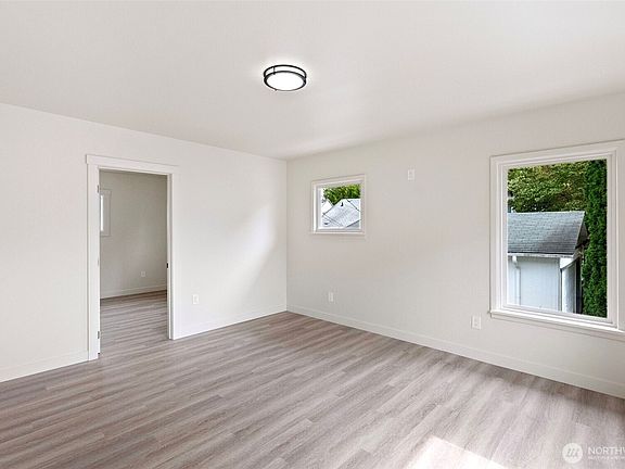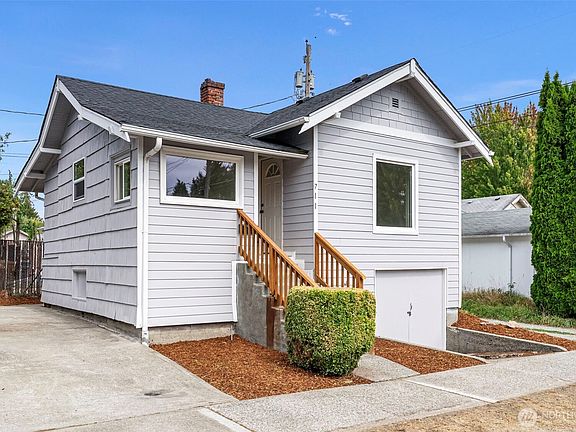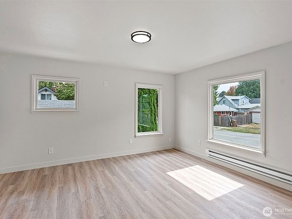 Charming updated bungalow in SE Tacoma! This 1 bed, 1 bath home offers 596 sq ft of bright, updated living space. New flooring and trim, fresh paint, and oversized windows that fill the space with light. The stylish kitchen features quartz counters, subway tile backsplash, adorable dining nook, and great storage. A modern vanity and matte black fixtures complete the bathroom update. Extremely low-maintenance yard. Convenient parking pad, off-street parking and basement/garage space that provides extra storage. Move-in ready and ideally located near shopping, schools, and commuter routes—this home is the perfect blend of charm and function!