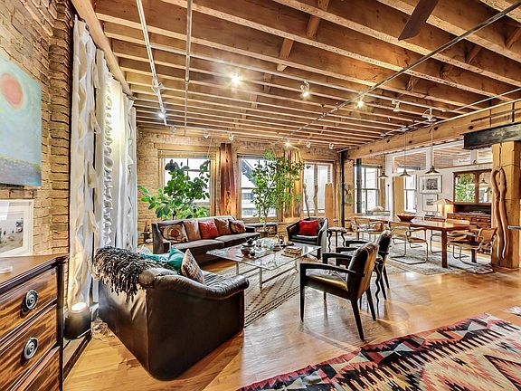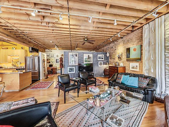 This art filled loft is in the Donohue Building where the loft experience began in Chicago in the late 70's. Big windows bring in sunshine in the mornings. There are genuine hardwood floors, massive wood columns, exposed timber ceilings and brick walls. The maple kitchen has (mostly) stainless steel appliances and countertops. The Bertazzoni refrigerator was installed in 2021. The GE electric range has a top broiler and a lower convection oven. There is also a GE microwave, wine cooler and a black fronted Kitchenaid dishwasher. The primary bath has a granite topped vanity with an undermount sink and lots of counter space. The tub/shower is fancifully tiled. The washer and dryer are hidden behind a rattan folding screen. The guest bath is located far from the action near the front door and has a shower stall. The long entrance gallery is perfect for extra storage and an art collection. The current owner even uses it as a study. The primary bedroom is currently being used as an art studio and office as well as a guest room. The second bedroom currently has a queen size bed (but has room for a king) and is tucked behind the vast living room/dining room/kitchen space. This is loft living that is both authentic to its roots, but still affords the privacy of separate bedrooms. Every possible inch of space is utilized for storage tucked in areas around the apartment. The seller is even willing to sell most of the artwork to the buyer who would like it left in place. It is terrific entertaining space on the premier block of Printers Row. For those who live on this special block of the city, there is no where else they'd rather be. It is in the center of the transportation hub of the metropolis. All of the CTA train lines have stops within 2 blocks of the building. There is a Red Line stop right outside on Polk. It's easy access to all of the highways from Ida B Wells Drive just 2 blocks north including easy access to Lake Shore Dr. Buses stop at the corner. The neighborhood is brimming with restaurants, bars & shops. It's an easy walk or roll to Grant Park, Buckingham Fountain, Millennium Park, the museums, theaters, universities, and all of the shopping and eating in the Loop. You can head south and be at the University of Chicago and its hospitals in minutes. Walk Score says it's a walker's and public transportation rider's paradise. The vaunted 2-way protected bike path that runs all the way through the Loop and over the river begins across the street from the front door. Pet limit of 2. The freight elevator is available by arrangement with maintenance staff; it isn't self-operated.Rentals allowed with minimum of a 6 month lease. No rental cap. $300 move fee and $200 refundable damage deposit. Reserve fund balance as of April 11, 2023: $1,478,695. No current or planned special assessments. Parking garages and a parking lot surround this building. The parking offered would be offsite and leased separately.