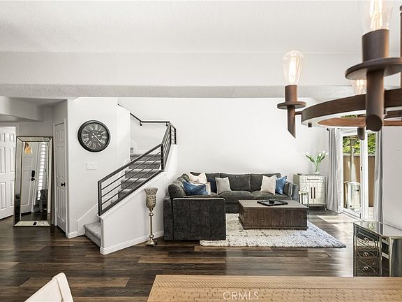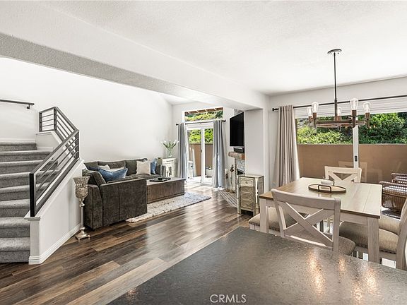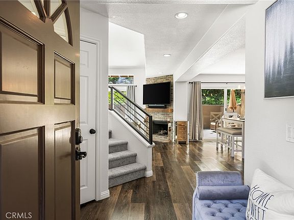 Beautifully remodeled townhome in the sought-after Laurelwood community of Anaheim Hills. The open floorplan features an upgraded kitchen with stainless steel appliances, a farmhouse sink, used brick backsplash, and breakfast counter. A separate dining room and living room with fireplace open to a private slate patio—perfect for entertaining or relaxing with peaceful nature views and gated access to walking trails. Upstairs a double-door entry leads to the primary bedroom with tranquil views and a tastefully remodeled en-suite bathroom featuring double sinks, upgraded fixtures, and a spacious shower. The secondary bedroom also includes its own en-suite bathroom. Unique to this unit is a two-car attached garage with epoxy flooring, a roll-up door, and a private driveway for additional parking. Additional highlights include a dedicated laundry room, new carpet, custom staircase and lighting, Anderson sliding doors, vaulted ceilings, recessed lighting, mirrored closet doors, ceiling fans, skylight, and plantation shutters. Located near top-rated schools—Canyon Rim Elementary, El Rancho Charter Junior High, and Canyon High—and just minutes from parks, trails, shopping, and freeways