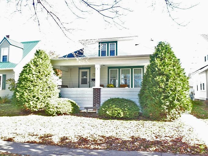 So much to offer! Lots of character. Move-in ready! Kitchen has good cabinet & counter space w/breakfast bar & is open concept to dining area and living room. Beautiful original wood molding & hard wood floors throughout. All newer vinyl windows. 2 main floor bedrooms & full bath updated 3 yrs ago. Upper has 2 bedrooms and paneled attic. L/L laundry, 100 AMP electrical. Large open front porch w/porch swing for relaxing. Garage has an extended overhang roof covering a patio area. It is a must see inside!