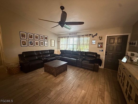 Perfect move in ready home with vaulted ceilings, neutral colors, wood look tile floors throughout and no carpet. Enjoy the spacious eat in kitchen with granite counter tops, upgraded cabinets, and stainless steel appliances. Other features include a large main suite with walk in closets, walk in shower, upgraded fixtures, newer roof, and AC ( approx 2019). Enjoy the covered screened lanai, covered front porch and an extended driveway for extra parking. In the backyard you will find a large shed ready to go with electricity. Don't miss the opportunity to own this home.