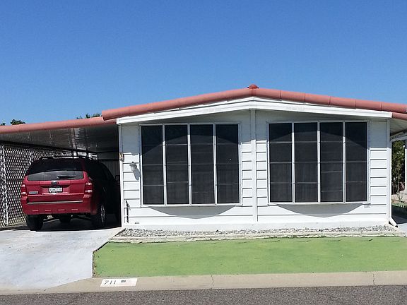 Welcome to Sierra Dawn South 55+ community. Own the land with this well maintained 2 bedrooms 2 bathrooms beautiful home. The home is clean, well maintained and recently added quality bamboo wood flooring in living room and hall way and indoor laundry room. It has gated front porch/car port and 2 outside storage sheds. Sierra Dawn Estate Association has 4 clubhouse, 5 pools, jaccuzzi sanuna, exercise room, horseshoe, shffleboard and numerous other senior catered activities and facilities. This is truly a hidden treasure for retired living.