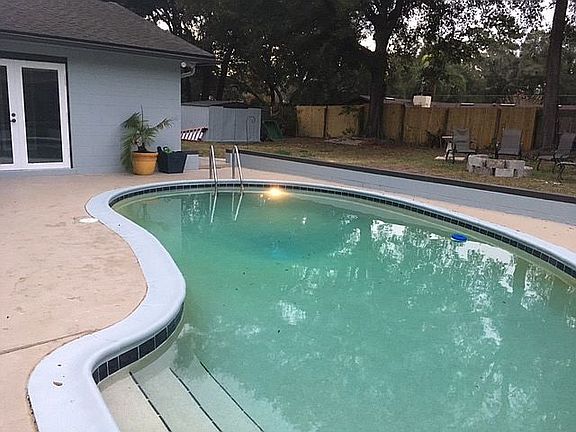 Charming mid-century home located in desirable Country Club Estates. The updated 3 BDRM, 2 BA, pool home is ideal for entertaining. The great room and master bedroom with en-suite bathroom have french doors to the in-ground pool and patio which can also be accessed from the second bathroom. The beautiful white/grey terrazzo floors have just been diamond ground and polished and there is brand new porcelain tile in the kitchen and utility rooms. Many upgrades throughout. Owner includes yard maintenance, water, and garbage pick up. The house is energy efficient with double pane windows through out. Sorry no pets.