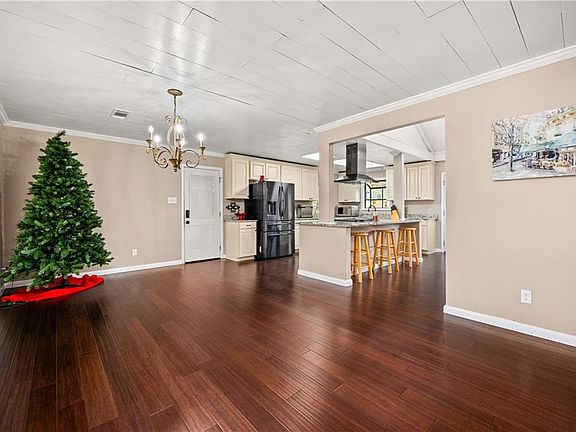Tons of storageOpen floorplanSoft teal doorCustom cabinetryStainless appliancesGranite countersShowpiece kitchen