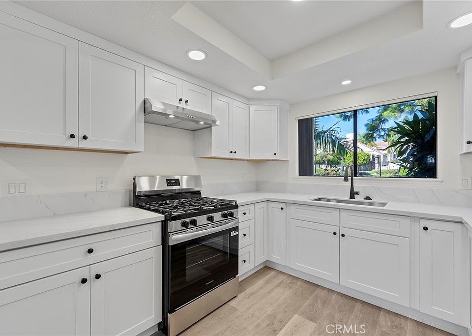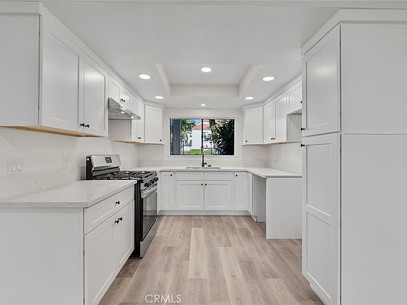 Welcome to this beautifully remodeled corner-unit condominium, offering an open floor plan and modern upgrades throughout. Located on the first floor in a gated community, this 3-bedroom, 2-bath home is perfect for comfortable and stylish living. Step into a completely renovated kitchen featuring new cabinets with stylish hardware, Quartz countertops, sink, stove, Laminate flooring. The open layout connects the kitchen to the dining and family rooms, with easy access to your private patio—ideal for entertaining or relaxing. Enjoy brand-new Stain Master Laminate flooring through out, fresh paint, new baseboards, and updated doors throughout the unit new appliances. The spacious master bedroom features high ceilings, new mirrored closet doors, and ample storage. The master bath has been tastefully remodeled with a stunning walk-in tile shower, new vanity, and mirror. The hallway bathroom offers a convenient shower/tub combo, along with a new cabinet and mirror. Additional features include in-unit two assigned parking spaces. As part of a gated community, you'll have access to two swimming pools, two clubhouses, and secure entry. Located just a short walk from vibrant Downtown Santa Ana, you'll enjoy easy access to shopping, dining, and entertainment.
