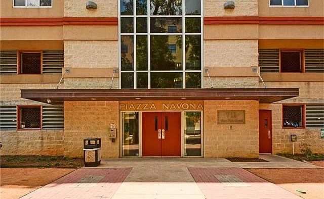 Piazza Navona is a highly desired West Campus 7 story boutique building with just 55 units. The controlled access lobby and gated, well lighted, attached parking garage are a plus! Unit 301 is an end unit which translates to a residence with lots of windows and exterior balcony. Light/bright floor plan has a spacious living/dining area, well appointed granite kitchen with an abundance of cabinets, newer stainless refrigerator. A stackable washer/dryer is included in a hallway closet. Each bedroom has a walk in closet & study nook. The lobby opens onto a beautifully landscaped interior courtyard with mature tropical landscaping. HOA includes water & trash plus a building "Porter" who maintains/cleans common areas, empties the "recycling" trash containers on each floor. Bldg insurance/maintenance included! Well organized, hands on HOA ! Unit 301 offers polished concrete floors in a neutral gray tone & wood style laminate floors in bedrooms. UT shuttle stops 1/2 block from Piazza!